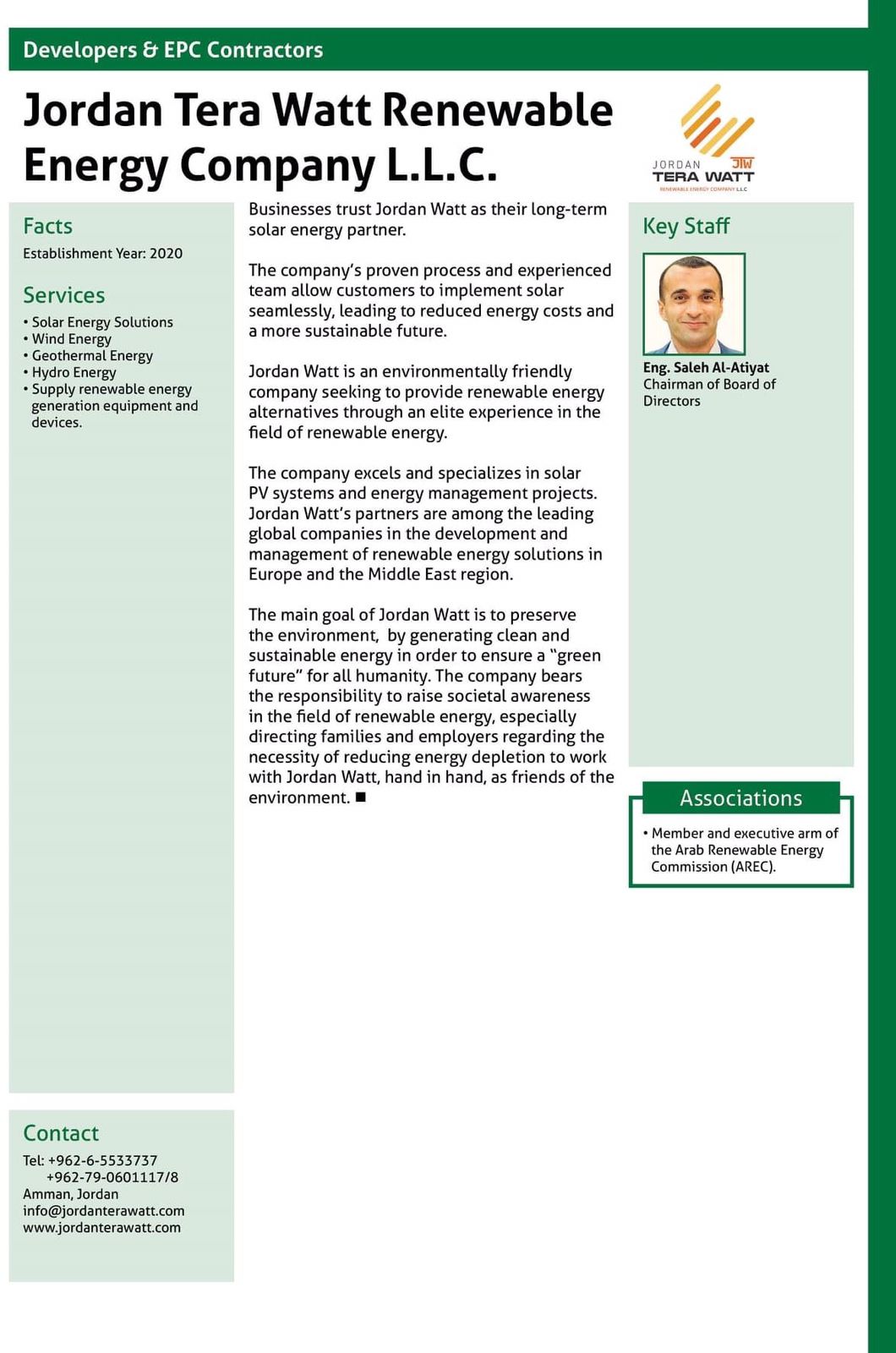 Jordan Tera Watt Renewable Energy Company
